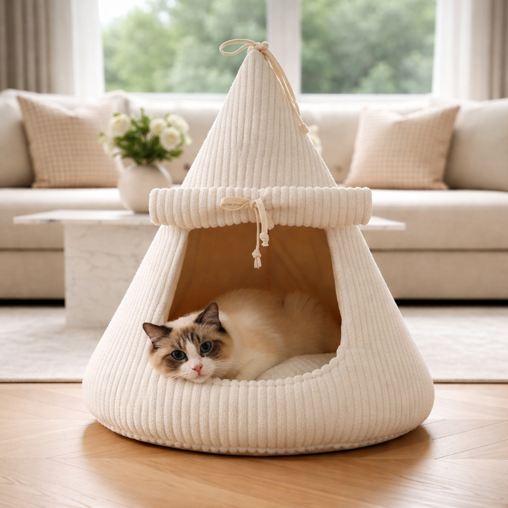 Możesz wybrać tkaninę i dopasować wygląd budki do stylu swojego wnętrza – to nie tylko funkcjonalne legowisko, ale też stylowy element aranżacji.