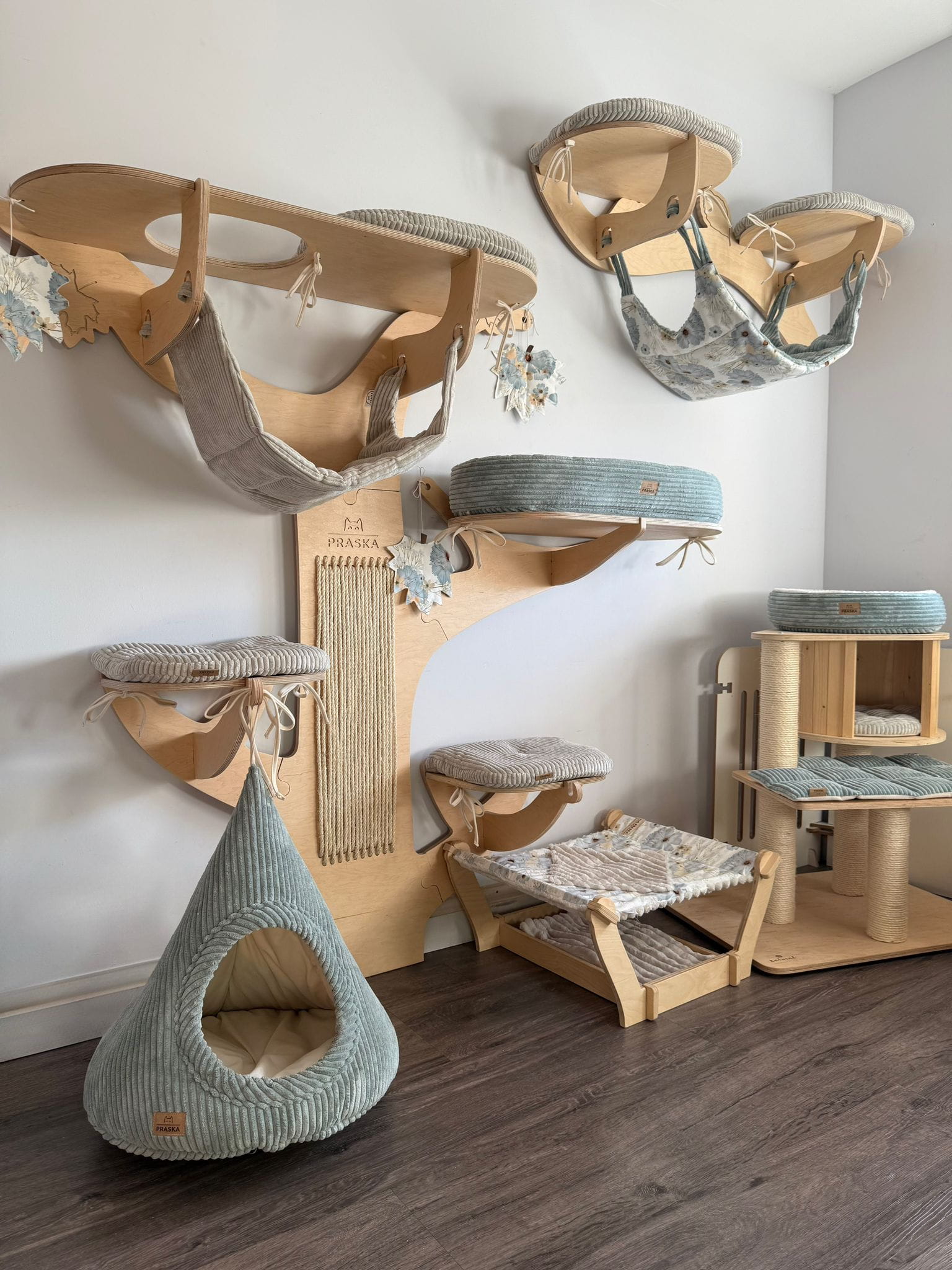 KLON Z DZIUPLĄ został zaprojektowany przez hodowcę kotów rasowych na podstawie wieloletniej obserwacji ich zachowań. To luksusowy mebel i drapak na ścianę, który łączy nowoczesną formę z realnymi potrzebami kota, tworząc dla niego azyl dokładnie tam, gdzie instynkt podpowiada, że jest najlepiej.