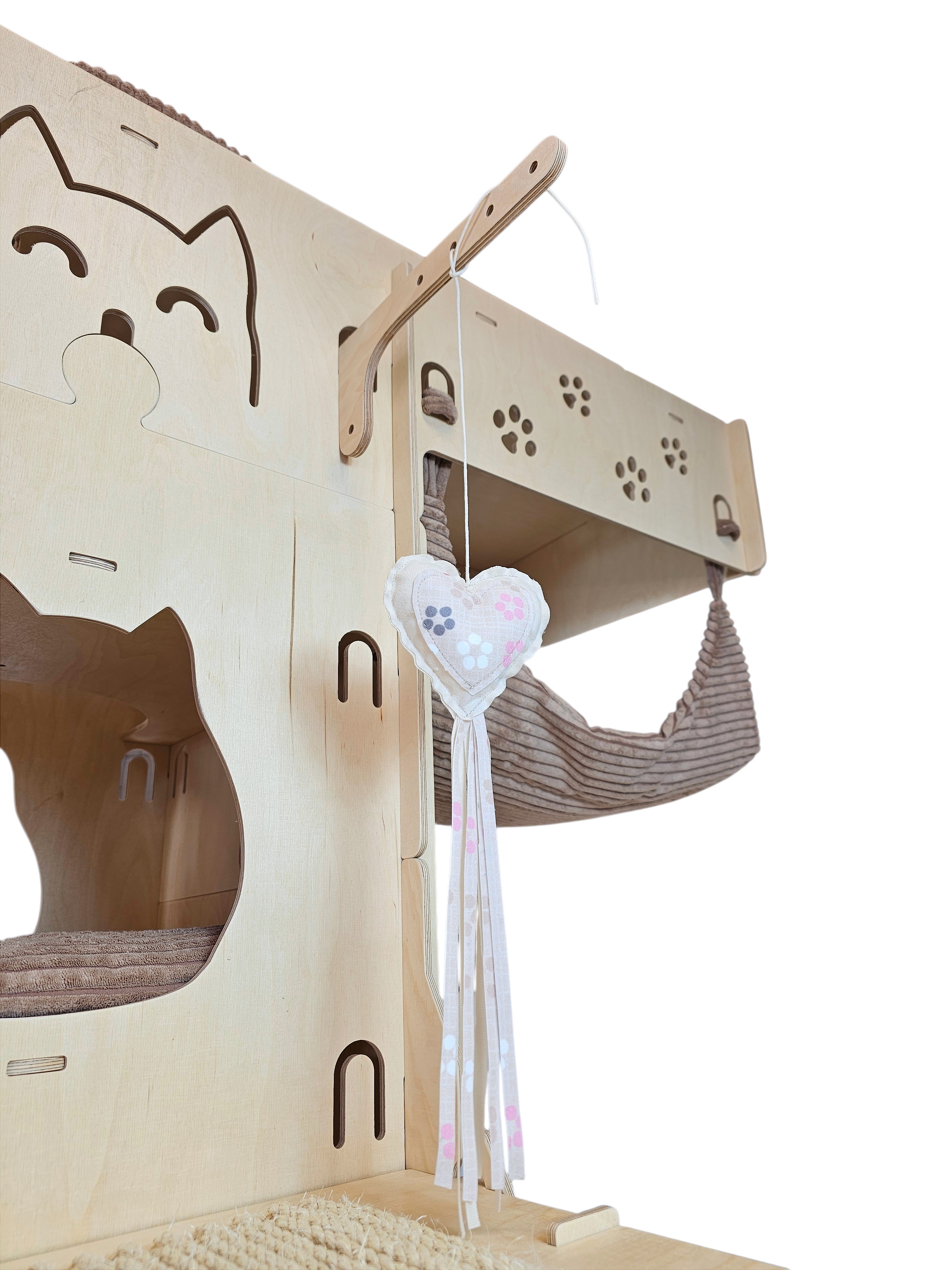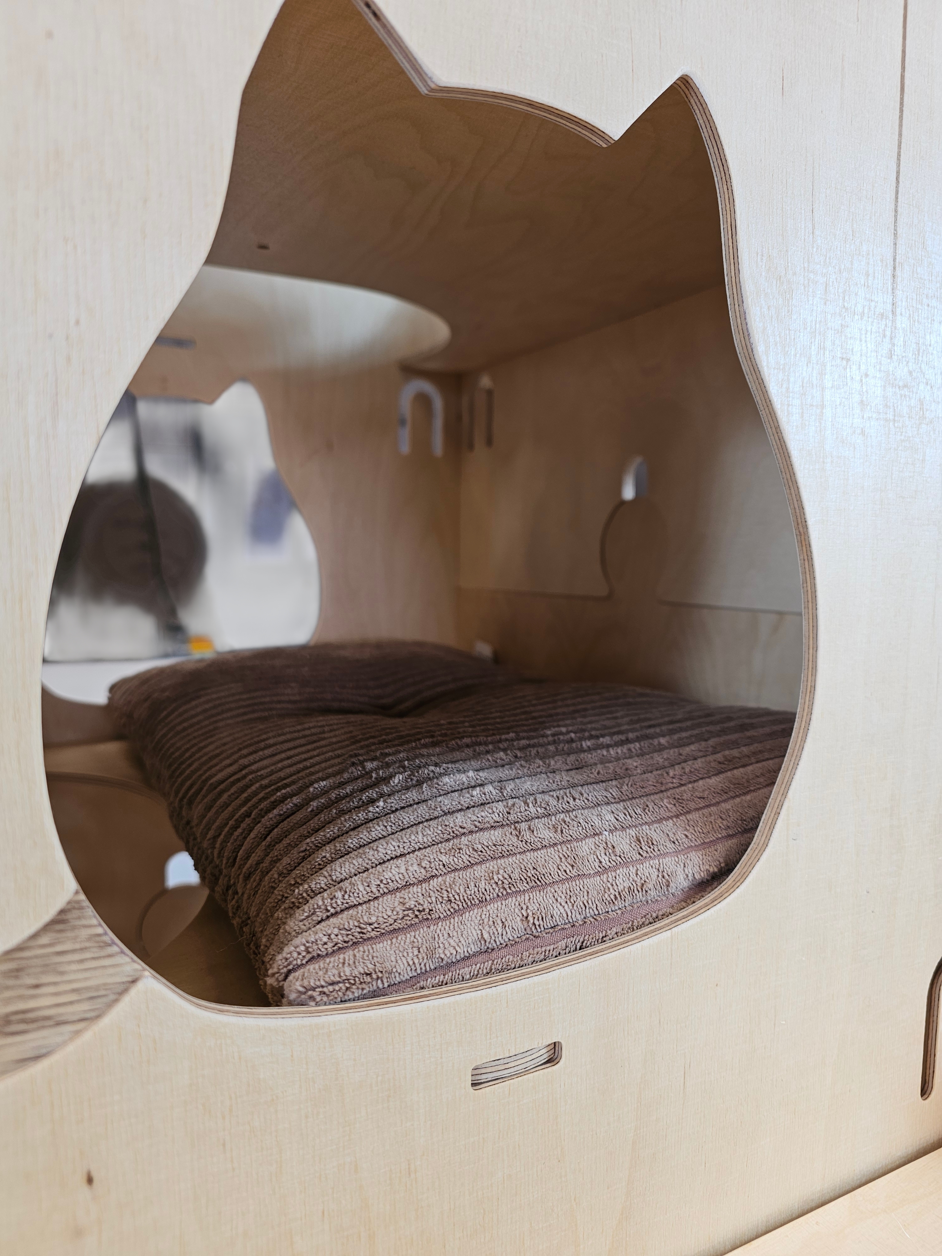W naszych produktach nie ma małych ani wąskich otworów – to świadoma decyzja, która zapewnia kotu maksymalne bezpieczeństwo. Eliminujemy ryzyko zaklinowania się, skaleczeń czy niepokoju, szczególnie u kociąt i młodych, ruchliwych kotów. Każdy element powstaje z myślą o ich swobodzie i naturalnym zachowaniu.