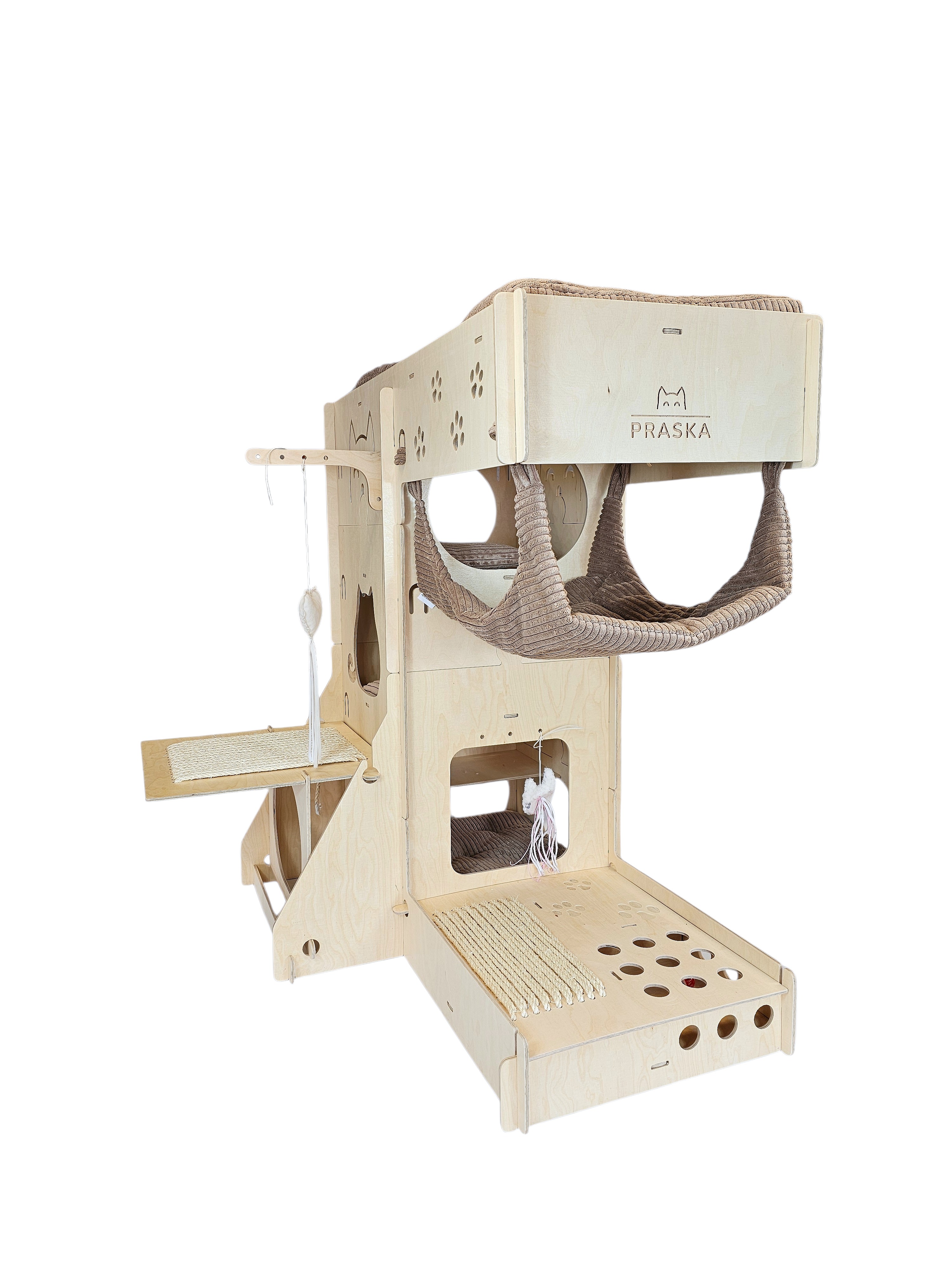 Domki z pochylnią, drapakiem i labiryntem zaprojektowane według wytycznych behawiorystów ! Zapewniają kotu ruch, bodźce, spokojny sen i przestrzeń, która minimalizuje stres. (Wersja po modernizacji z czerwca 2025 roku)