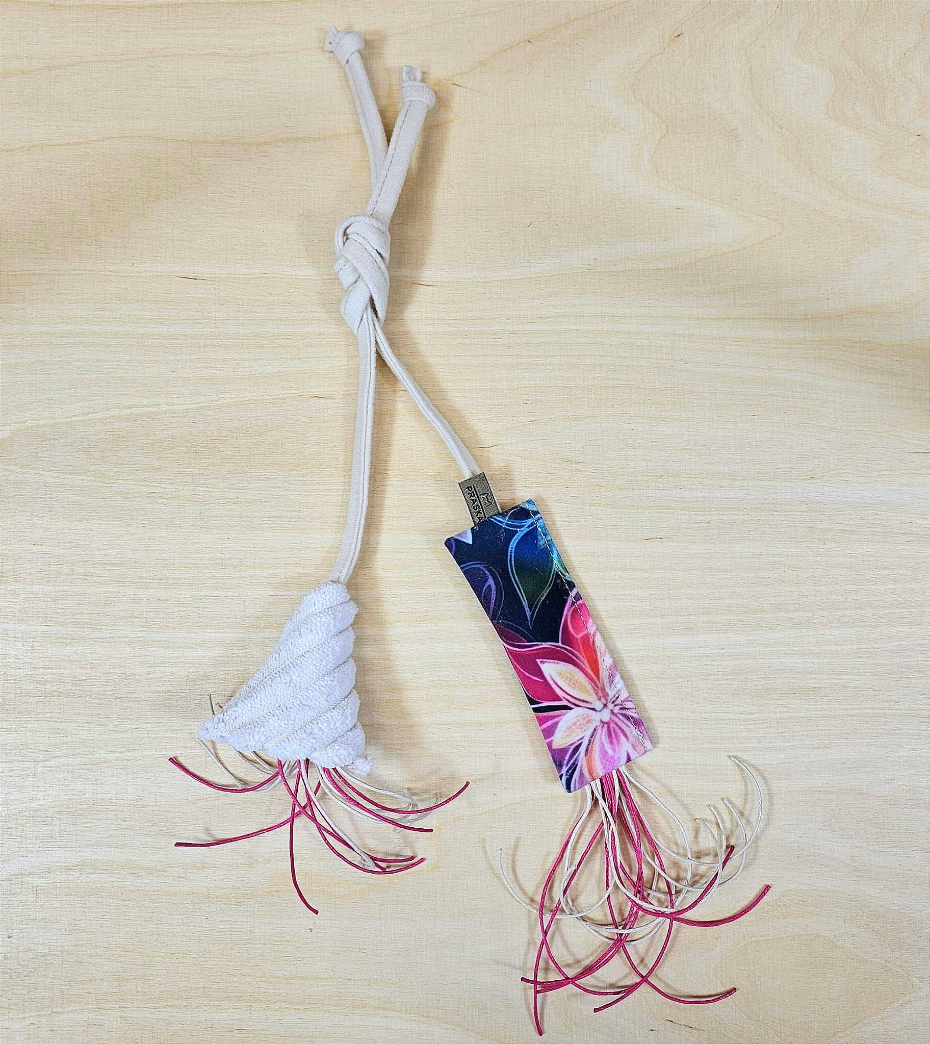 Zabawka o miękkim, kwiatowym kształcie z wieloma sznureczkami, które doskonale tłumią energię kota – idealna do gryzienia i szarpania.