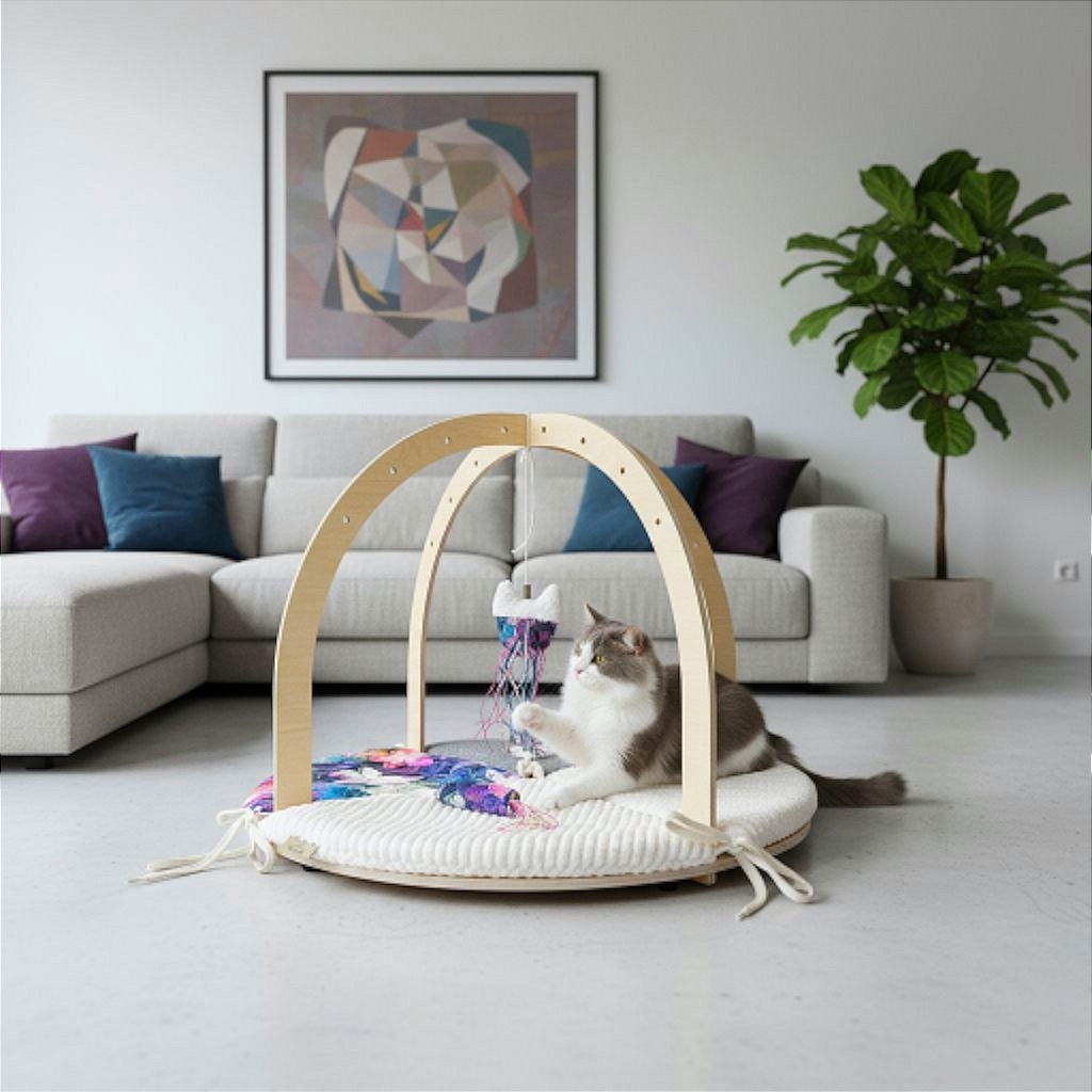 Obie zabawki możesz przywiązać do mat sensorycznych ARENA, ale równie dobrze sprawdzą się samodzielnie – zawieszone w dowolnym miejscu, gdzie kot lubi się bawić.