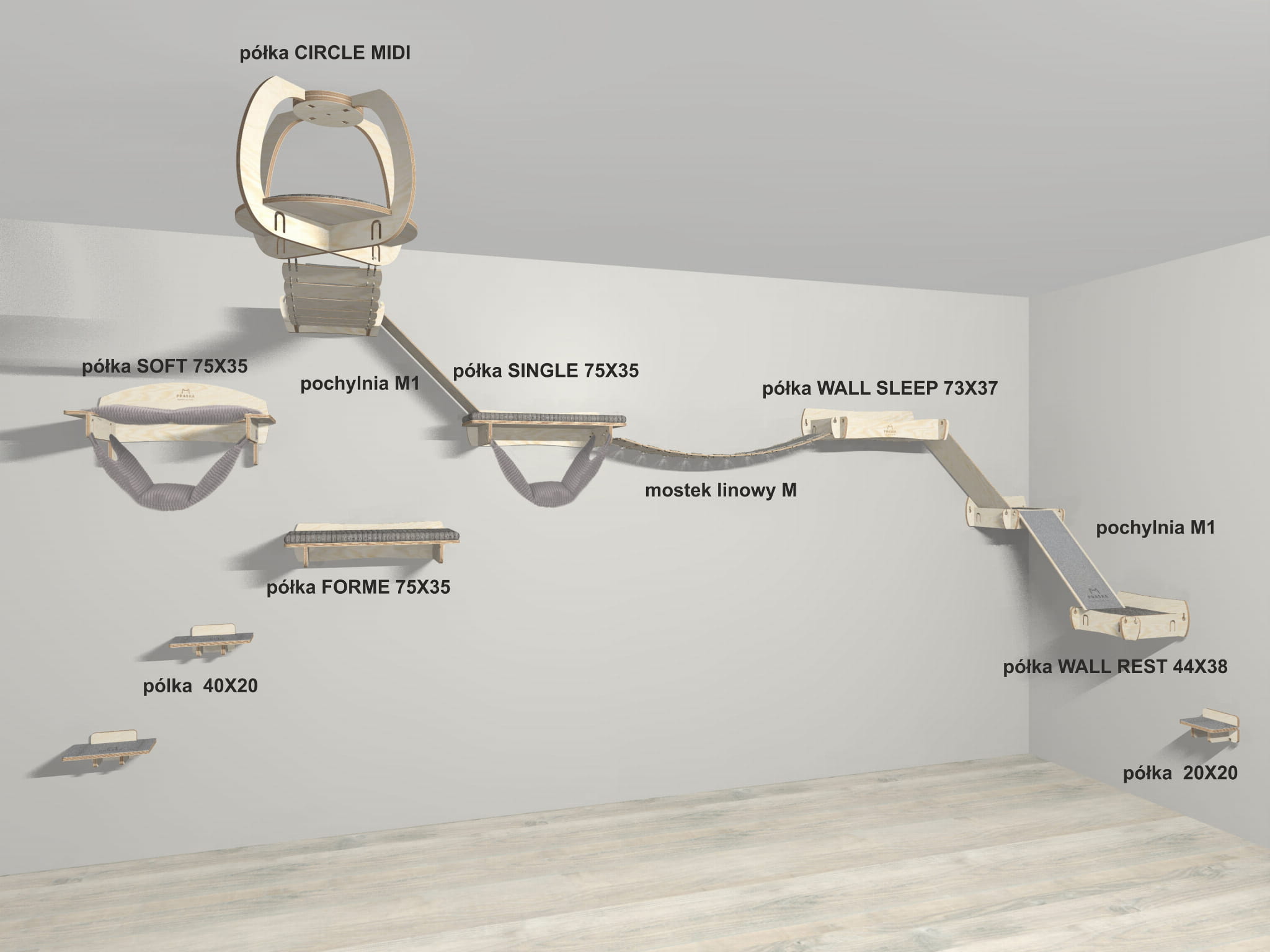 Stabilność i bezpieczeństwo - Kładka jest stabilna, a jej montaż jest bezpieczny i trwały, co czyni ją doskonałym rozwiązaniem dla kotów o różnej wadze i rozmiarach. Jest idealnym uzupełnieniem parków linowych i zapewnia kotom bezpieczne miejsce do aktywności.
