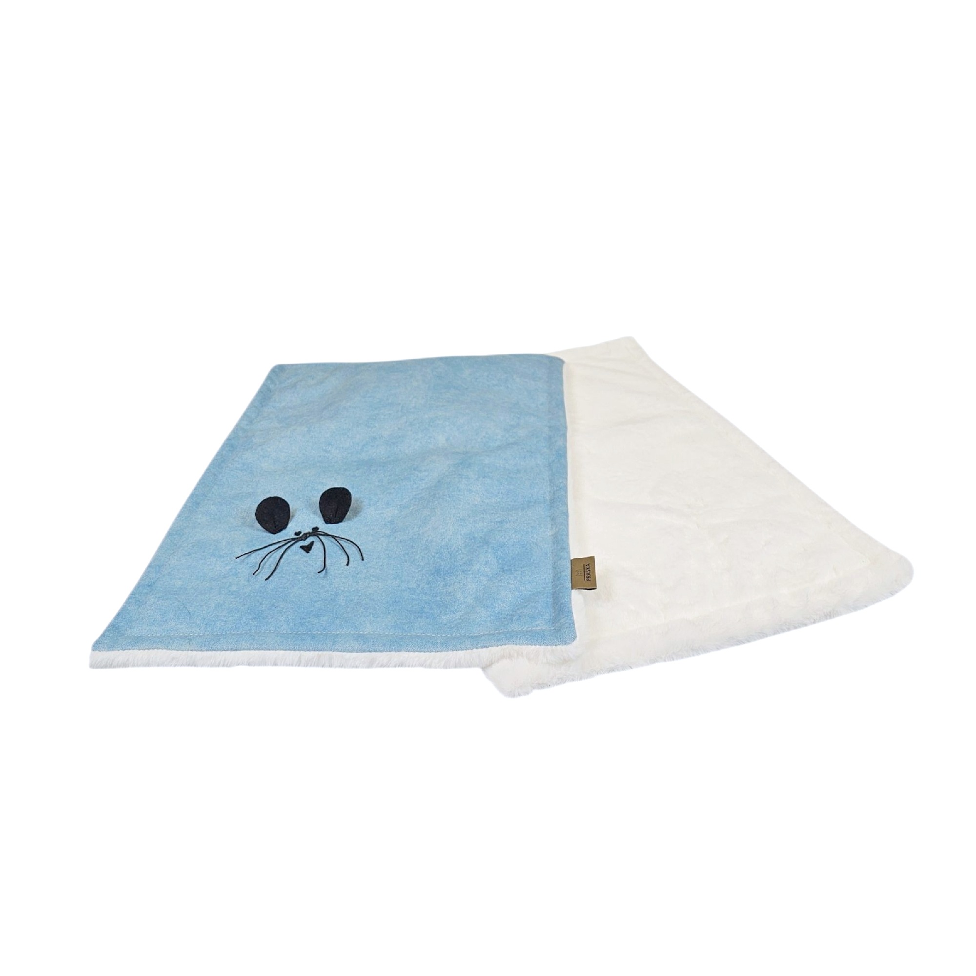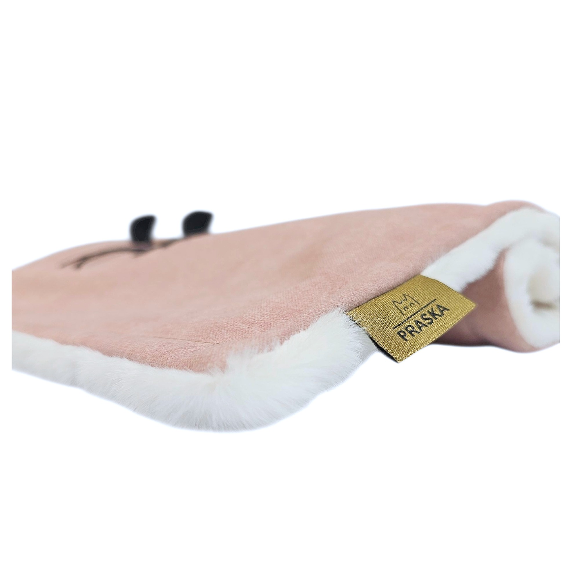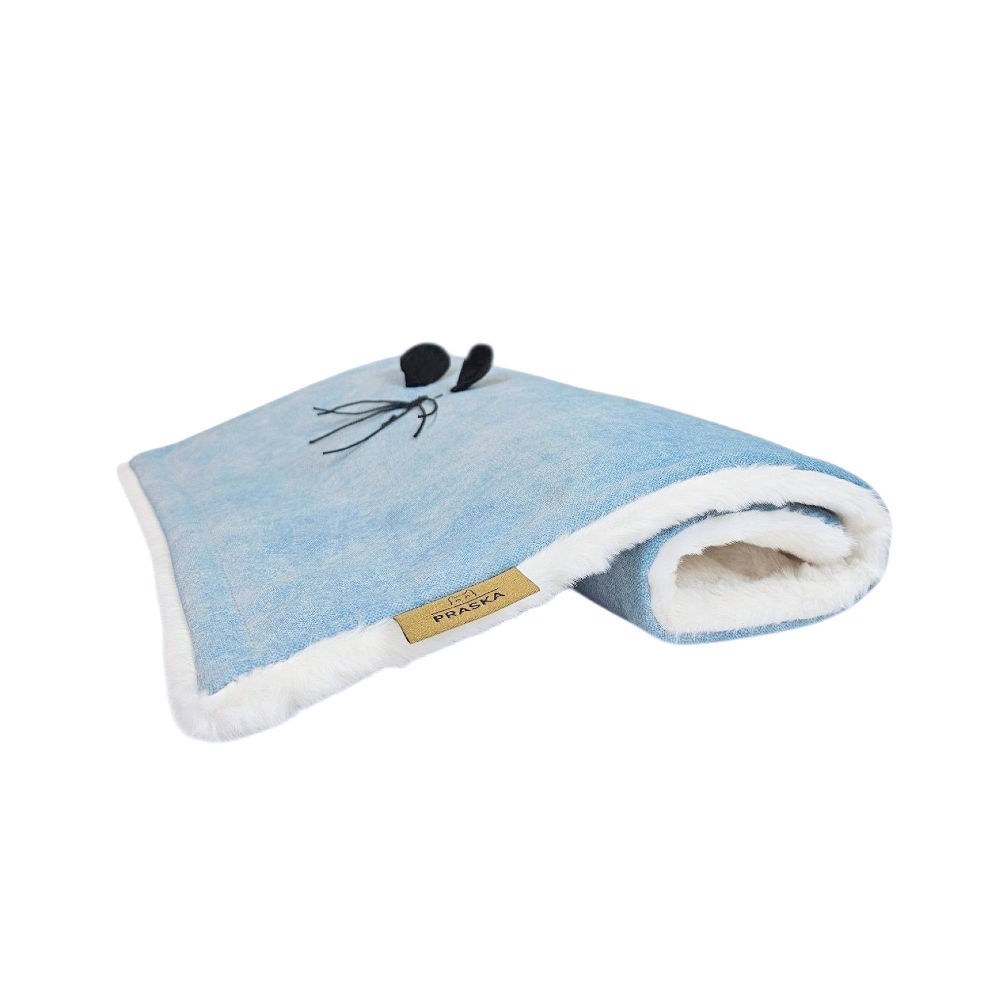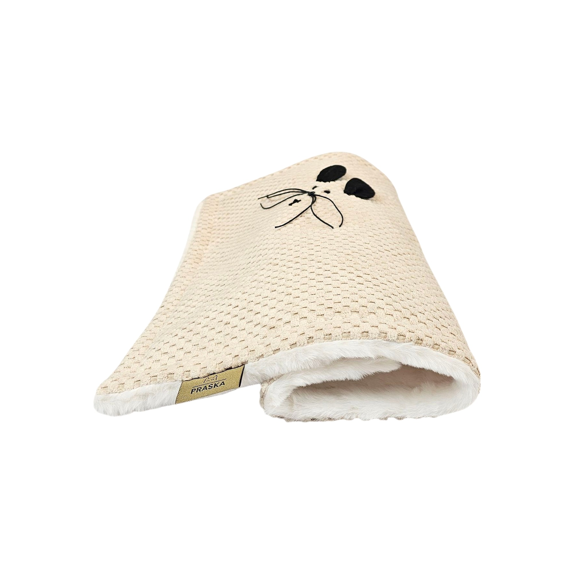 Kocyk PUFFY to miękki, elegancki kocyk wykonany z tkaniny premium i puszystego futerka. Posiada między tkaniną a futerkiem warstwę ocieplenia. Idealny w domu, w podróży i jako element wyprawki. Tkanina się nie mechaci, nie roluje i nie traci koloru. Wypełnienie jest sprężyste i wraca do pierwotnego kształtu. Czarna aplikacja w kształcie myszki to subtelny znak kolekcji PRASKA.