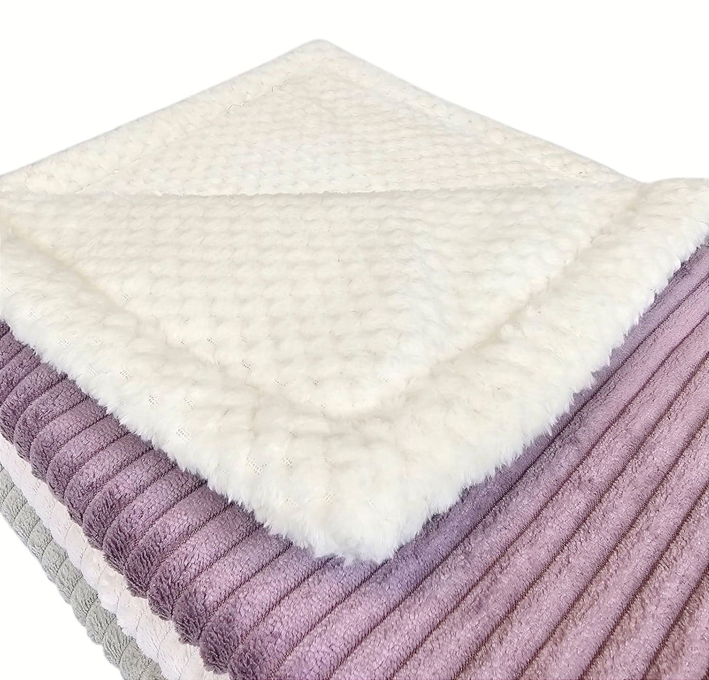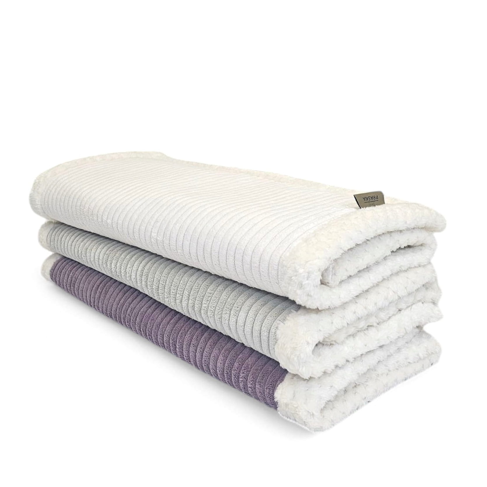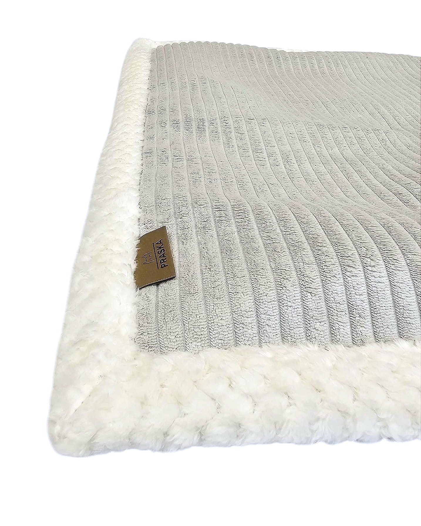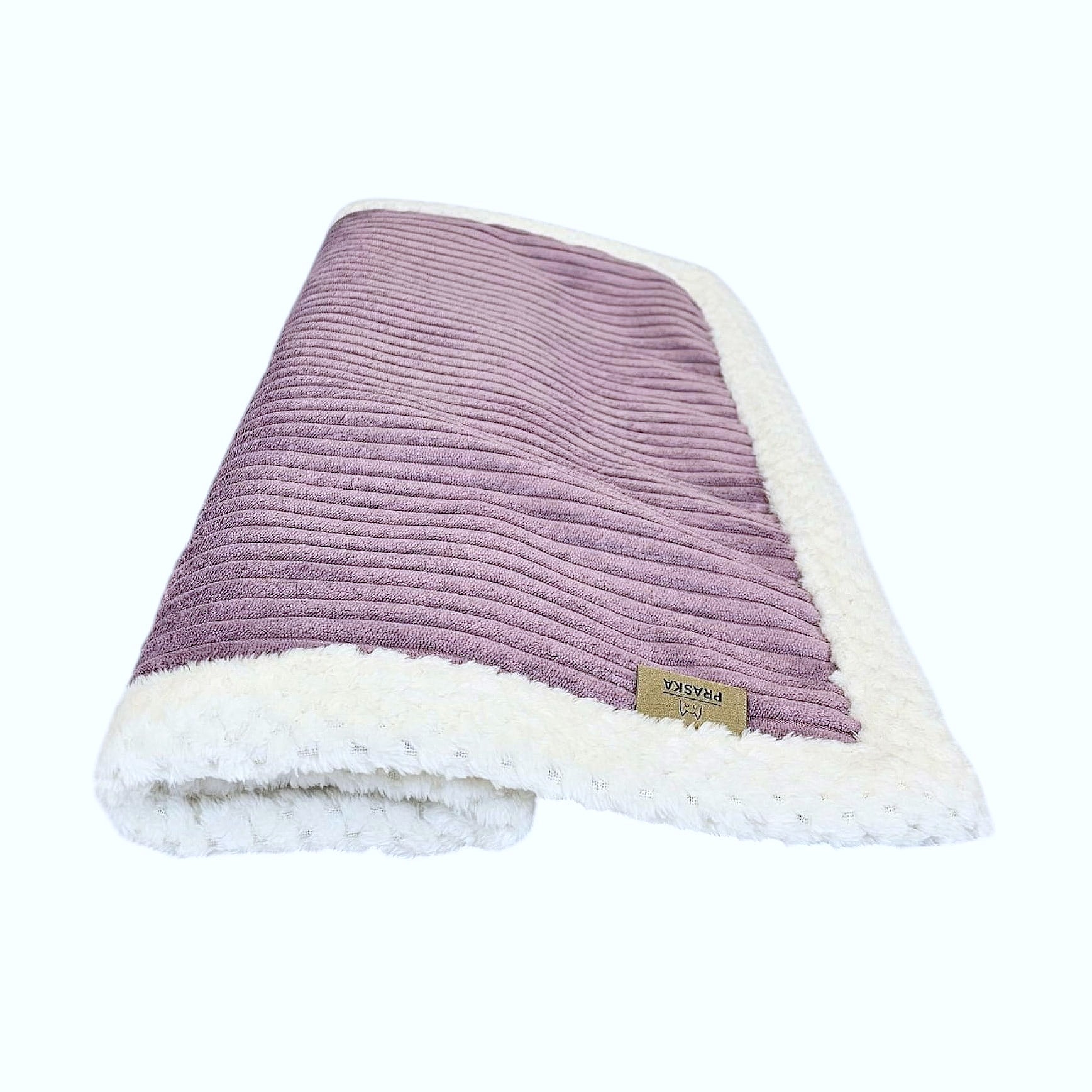 To miękki, ciepły kocyk z eleganckiej tkaniny i puszystego futerka. Posiada w środku lekkie ocieplenie, dzięki czemu dobrze trzyma ciepło i zachowuje ładny kształt. Sprawdza się w domu, w podróży i jako część wyprawki, dla dziecka, kota lub małego psa.