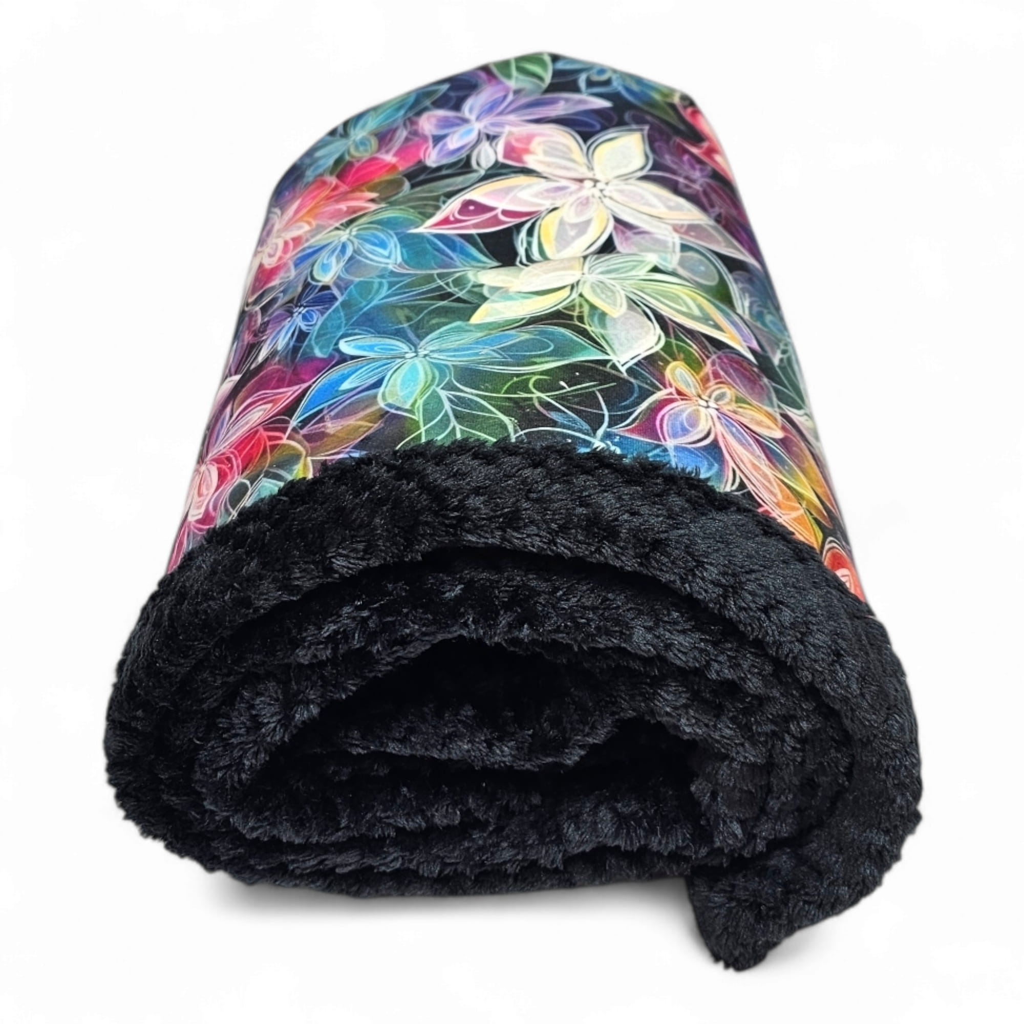 Futerko - druga strona jest z miękkiego futra w kolorze mlecznym lub czarnym. Brzegi kocyka są lekko wywinięte futerkiem na tkaninę, co dodaje mu uroku i sprawia, że prezentuje się wyjątkowo pięknie.