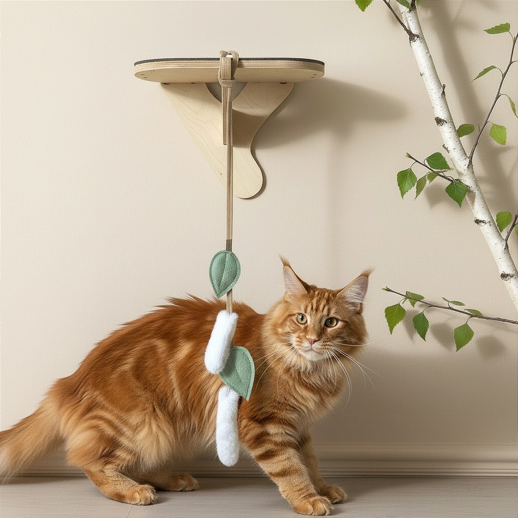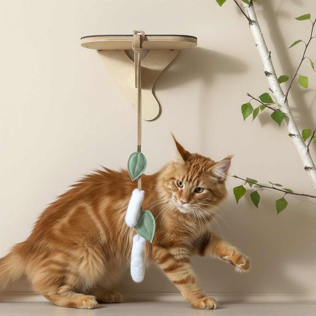 Subtelne ruchy liści oraz lekkich, puszystych elementów działają jak bodziec sensoryczny. Kot instynktownie reaguje na kołysanie i fakturę zabawki, co pobudza ciekawość i naturalne zachowania łowieckie.
