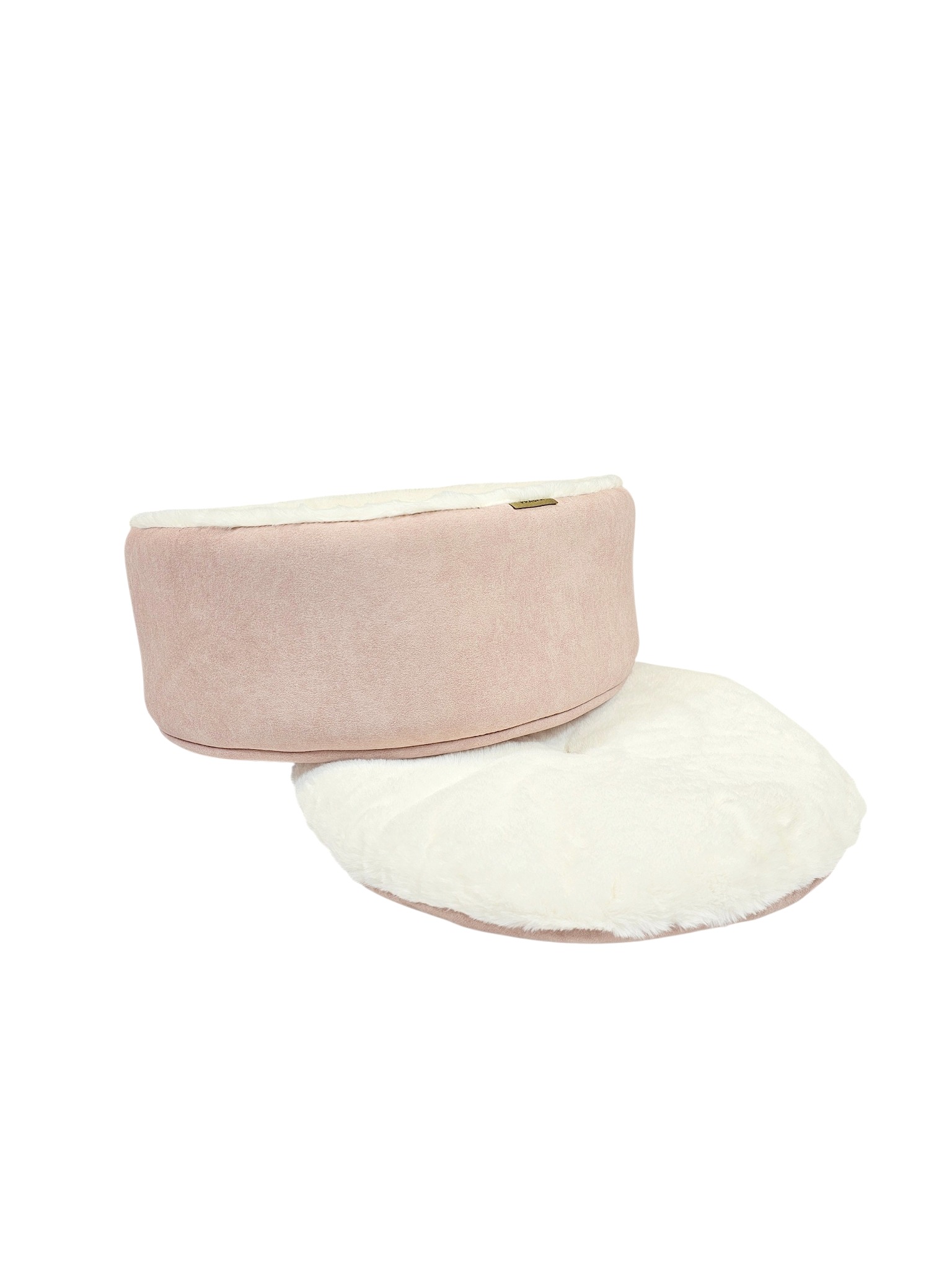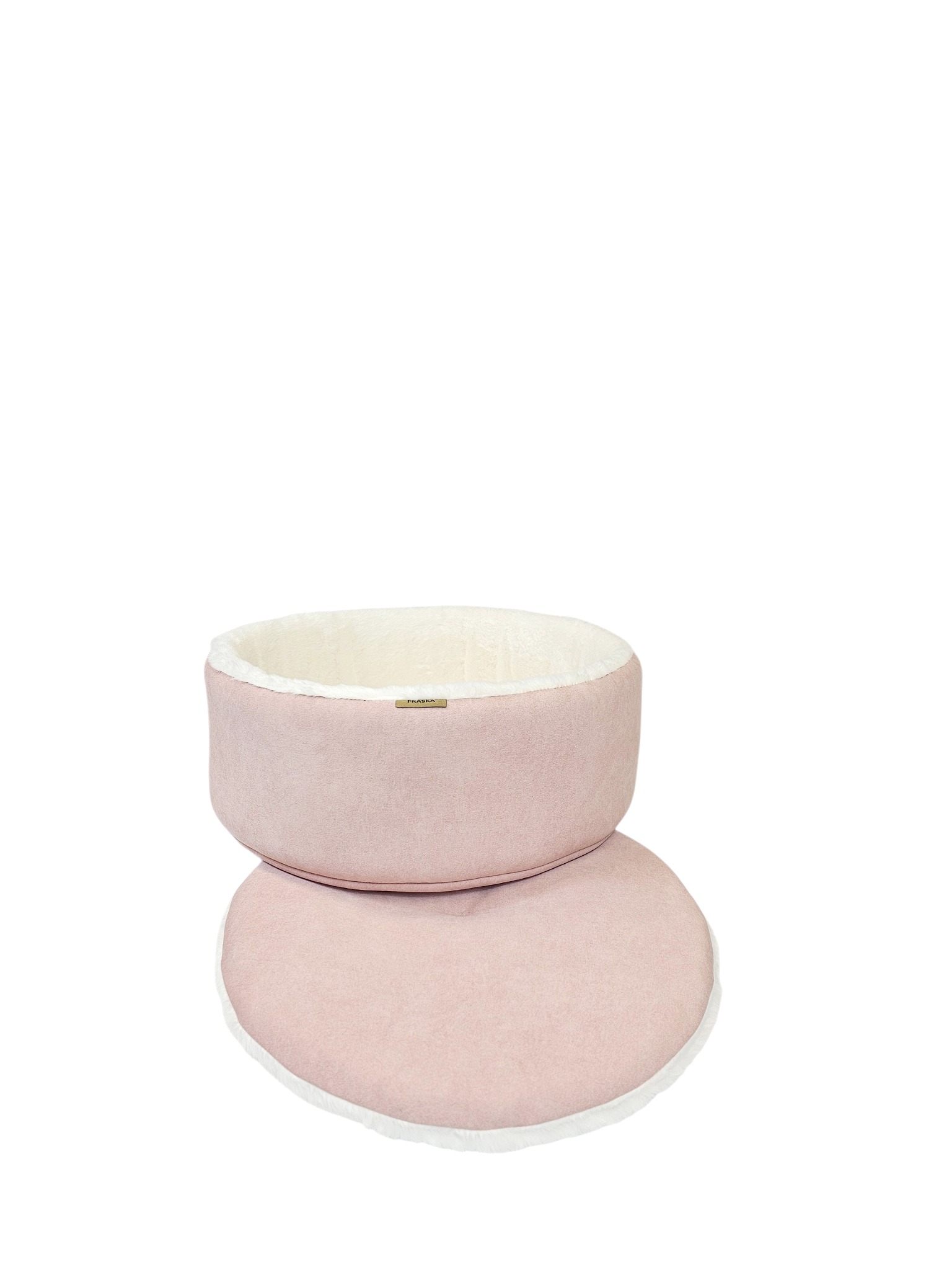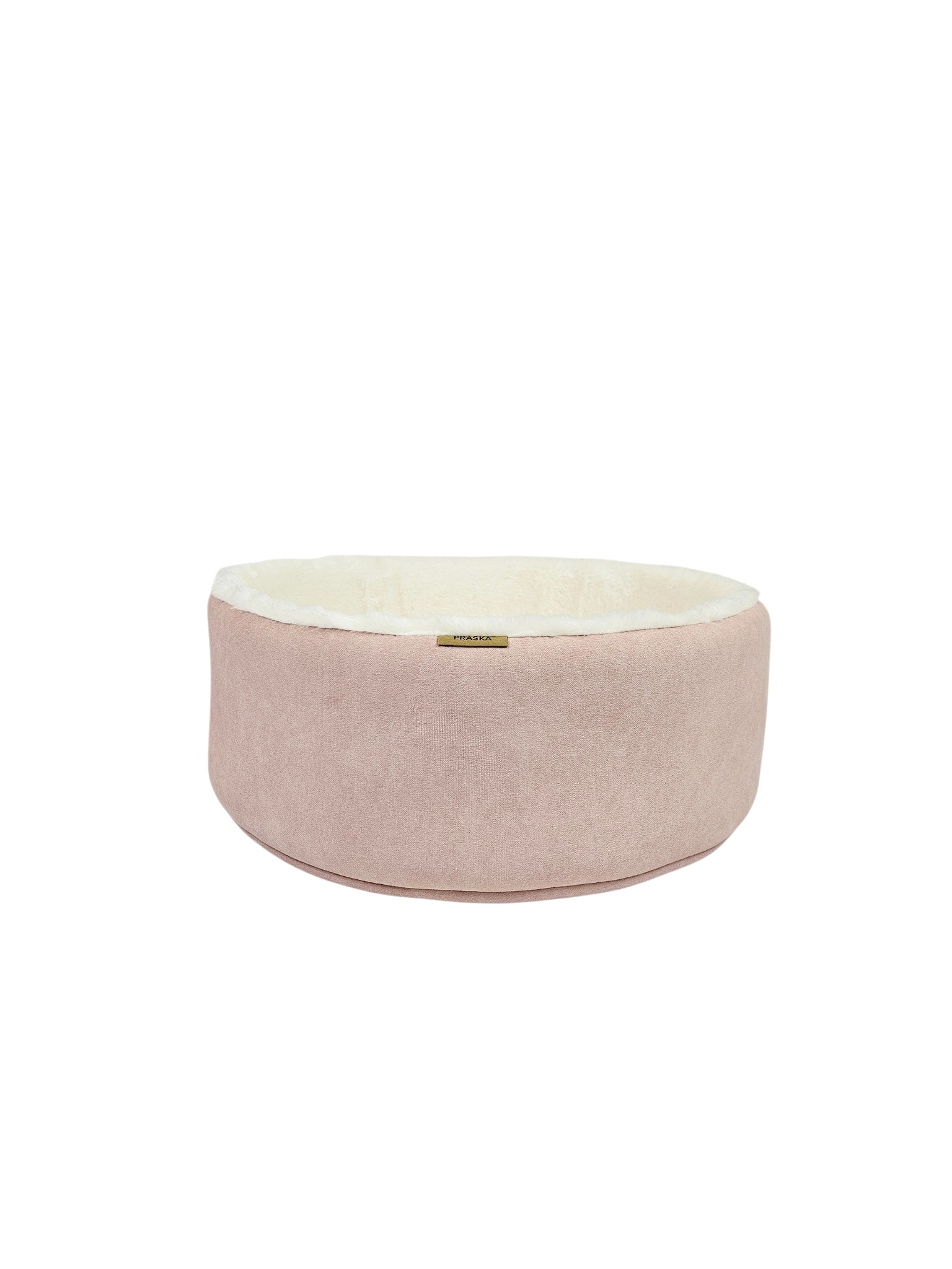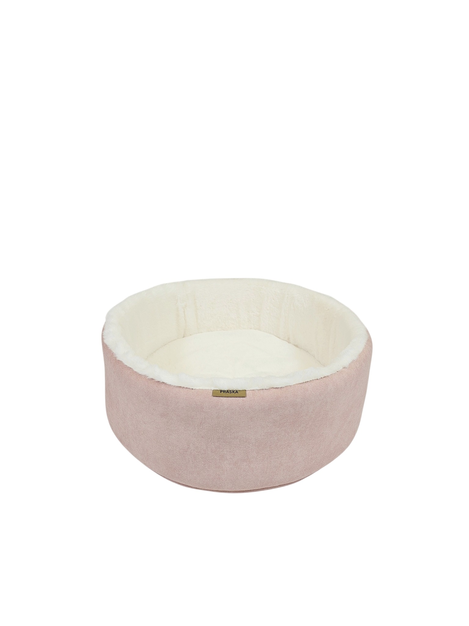 Wnętrze legowiska i druga strona poduszki to miękkie futerko w kolorze mlecznym lub czarnym.
