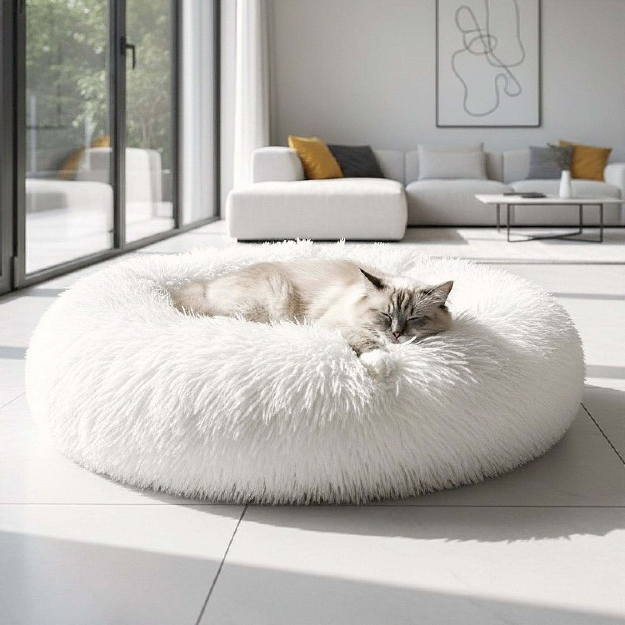 CHMURA RELAKSU to legowisko dla kota i psa z futra premium i wyjmowanym wkładem.