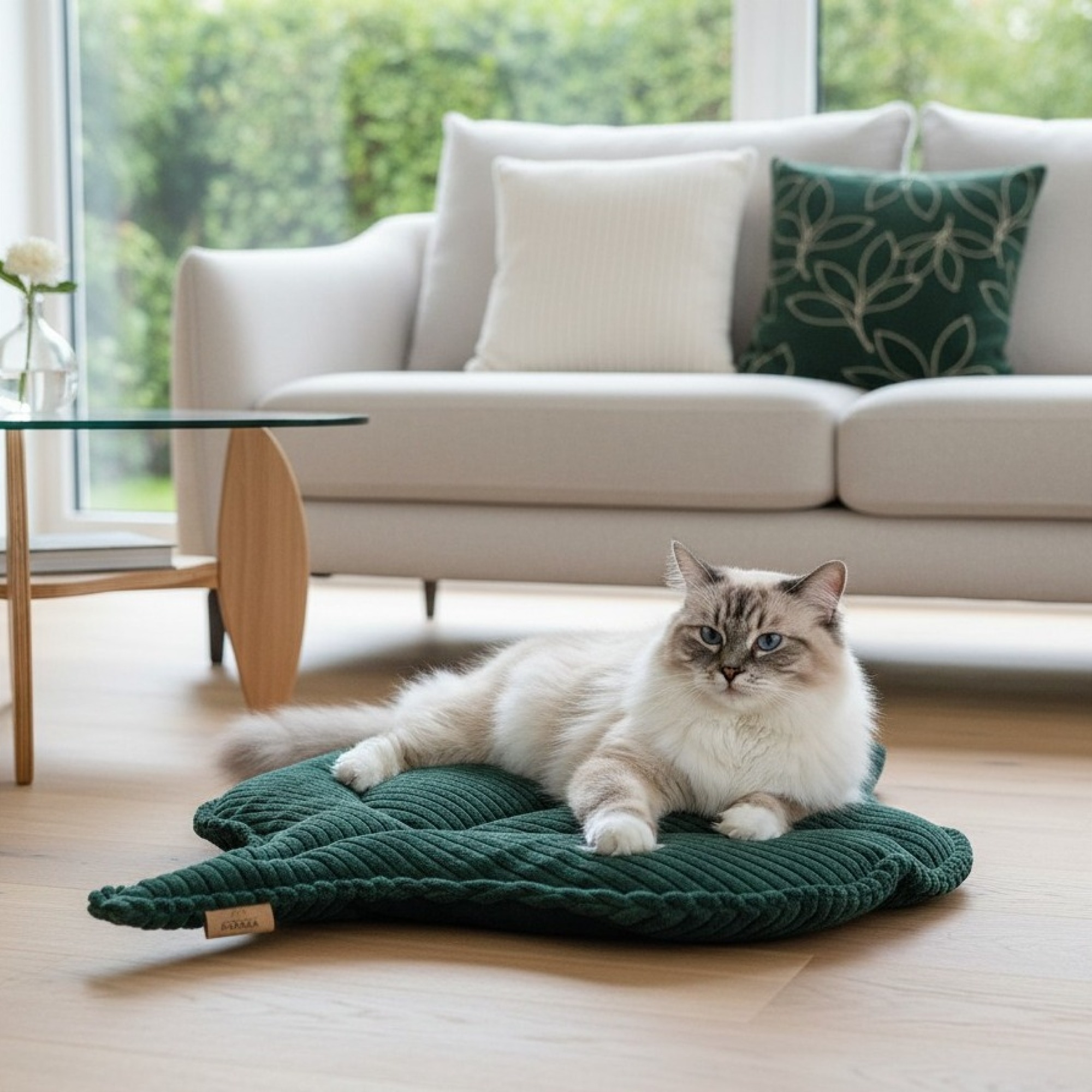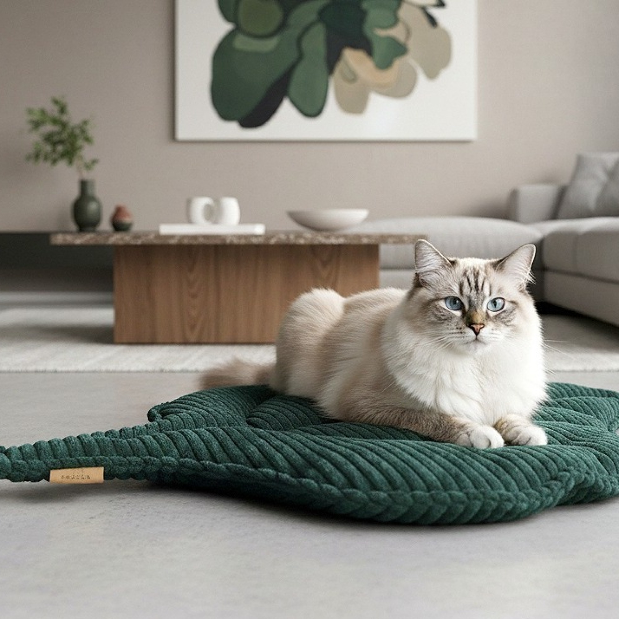 Miękka, starannie wykonana mata w kształcie liścia to produkt inspirowany naturą, który doskonale łączy funkcjonalność z estetyką. Sprawdzi się jako legowisko, dywanik, ozdoba i miejsce wypoczynku – nie tylko dla kota.