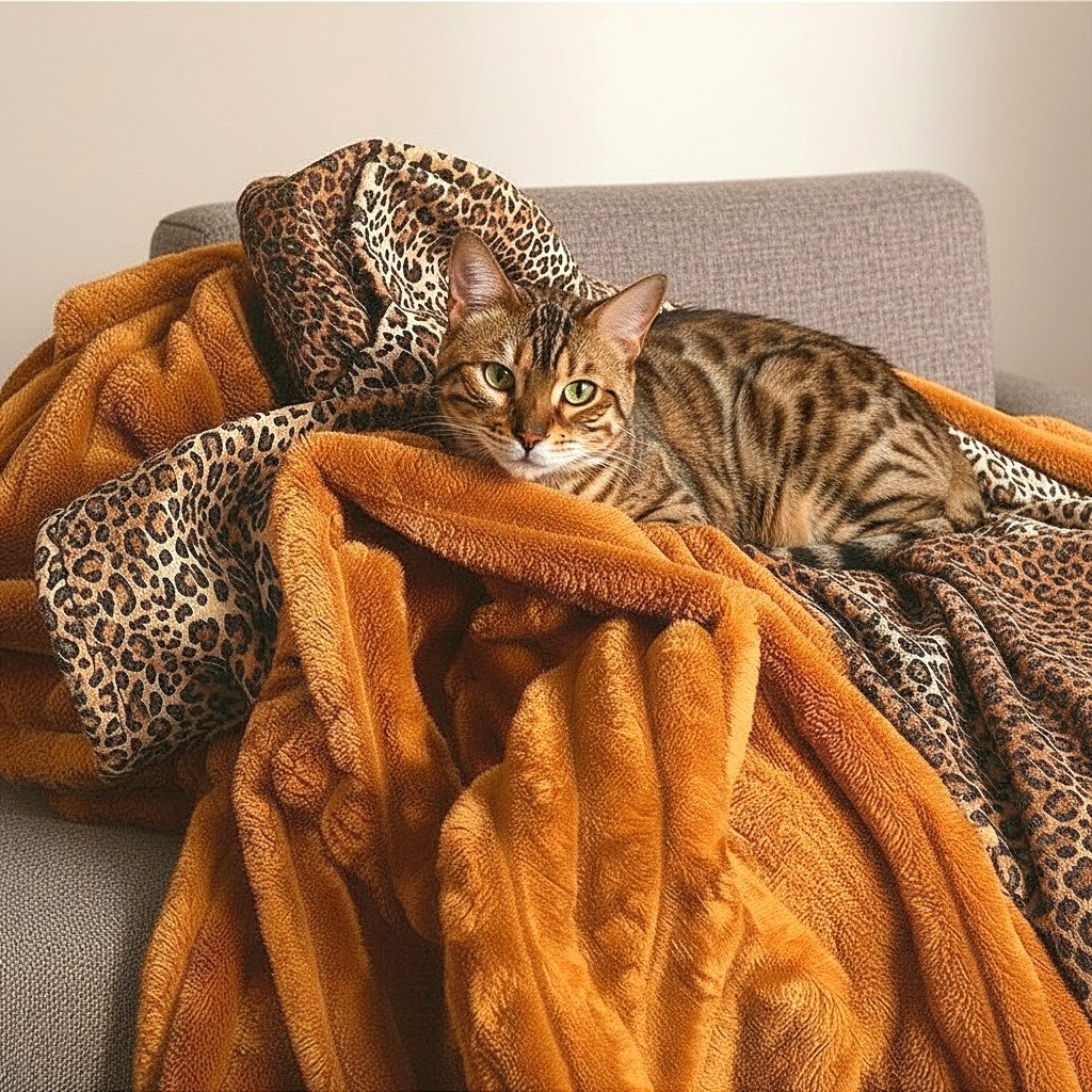 Do uszycia koca wykorzystujemy futro i tkaniny premium o wyjątkowej gęstości i trwałości, stosowane w kolekcjach luksusowych wnętrz i ekskluzywnych dodatkach. To zupełnie inny standard niż tanie, delikatne imitacje dostępne w masowej sprzedaży.