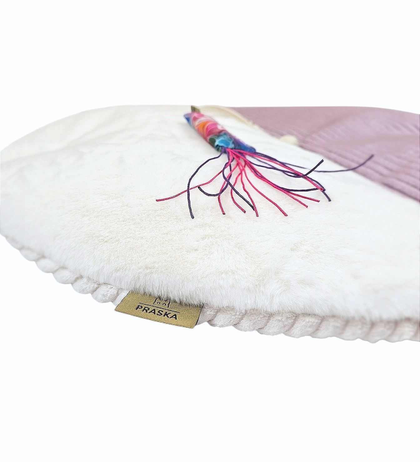 Dwie odmienne powierzchnie dostarczają różnorodnych doznań: miękkie futerko zachęca do relaksu, a szeleszcząca folia pod tkaniną pobudza ciekawość i instynkt łowiecki.