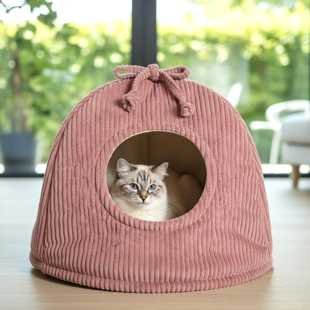 Wypełnienie pozostaje sprężyste i komfortowe. Dzięki temu kot ma miękkie, ciepłe i stabilne miejsce do leżenia.