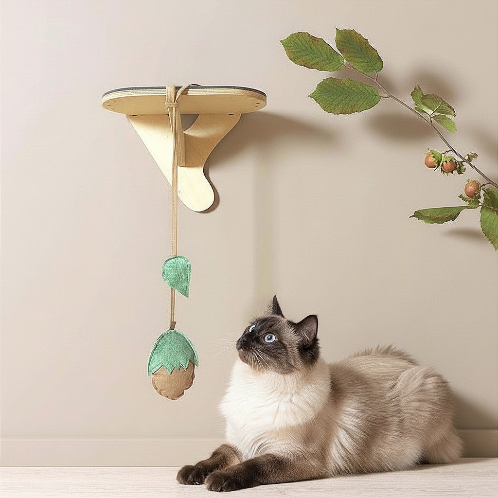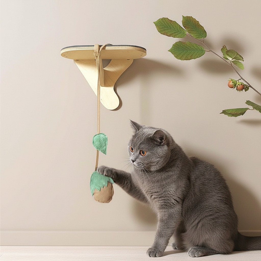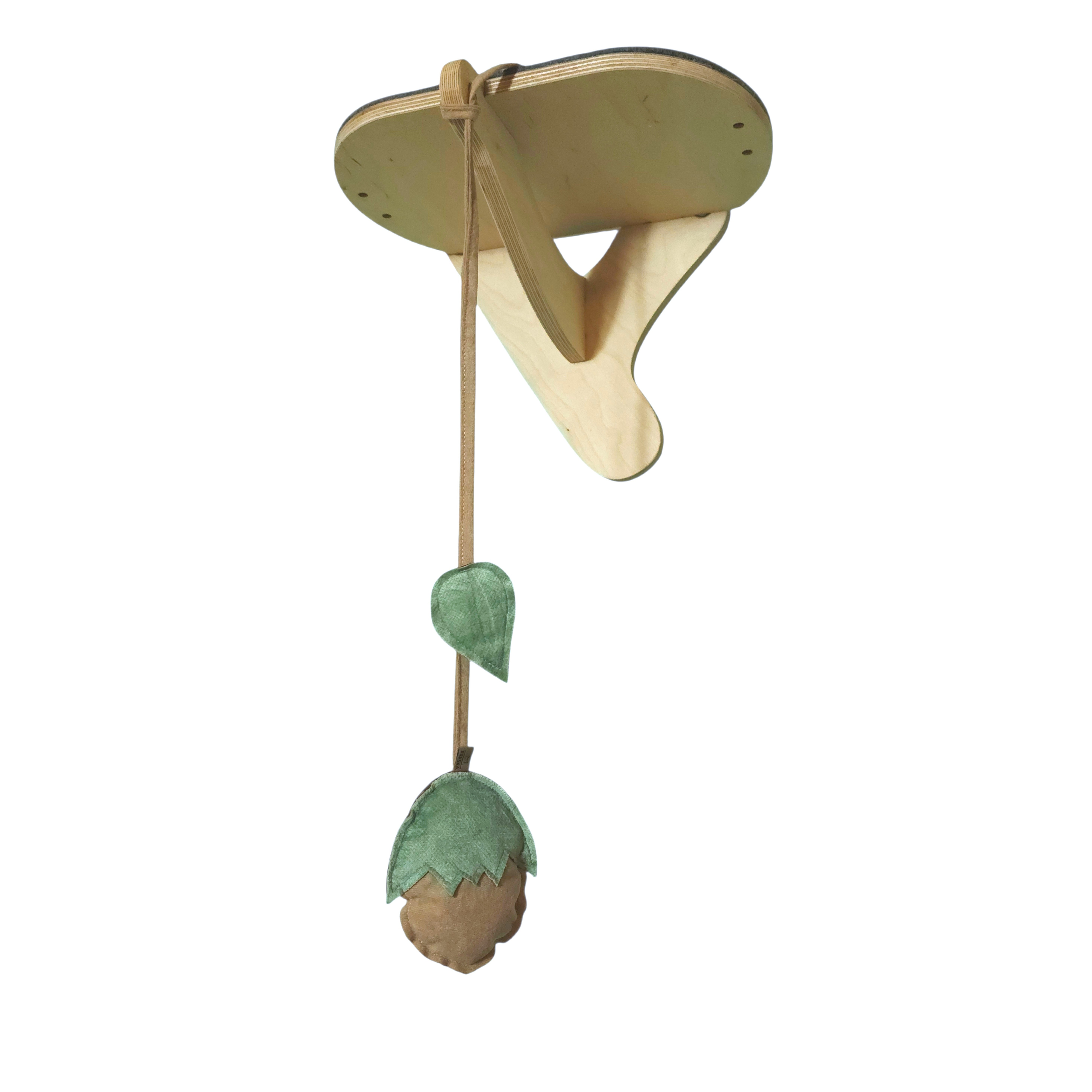 Miękkie, tekstylne elementy reagują na ruch, a ich poruszenie stymuluje instynkt łowiecki i ciekawość kota. Lekka forma nie przytłacza przestrzeni, a jednocześnie dodaje wnętrzu naturalnego charakteru i subtelnej elegancji.