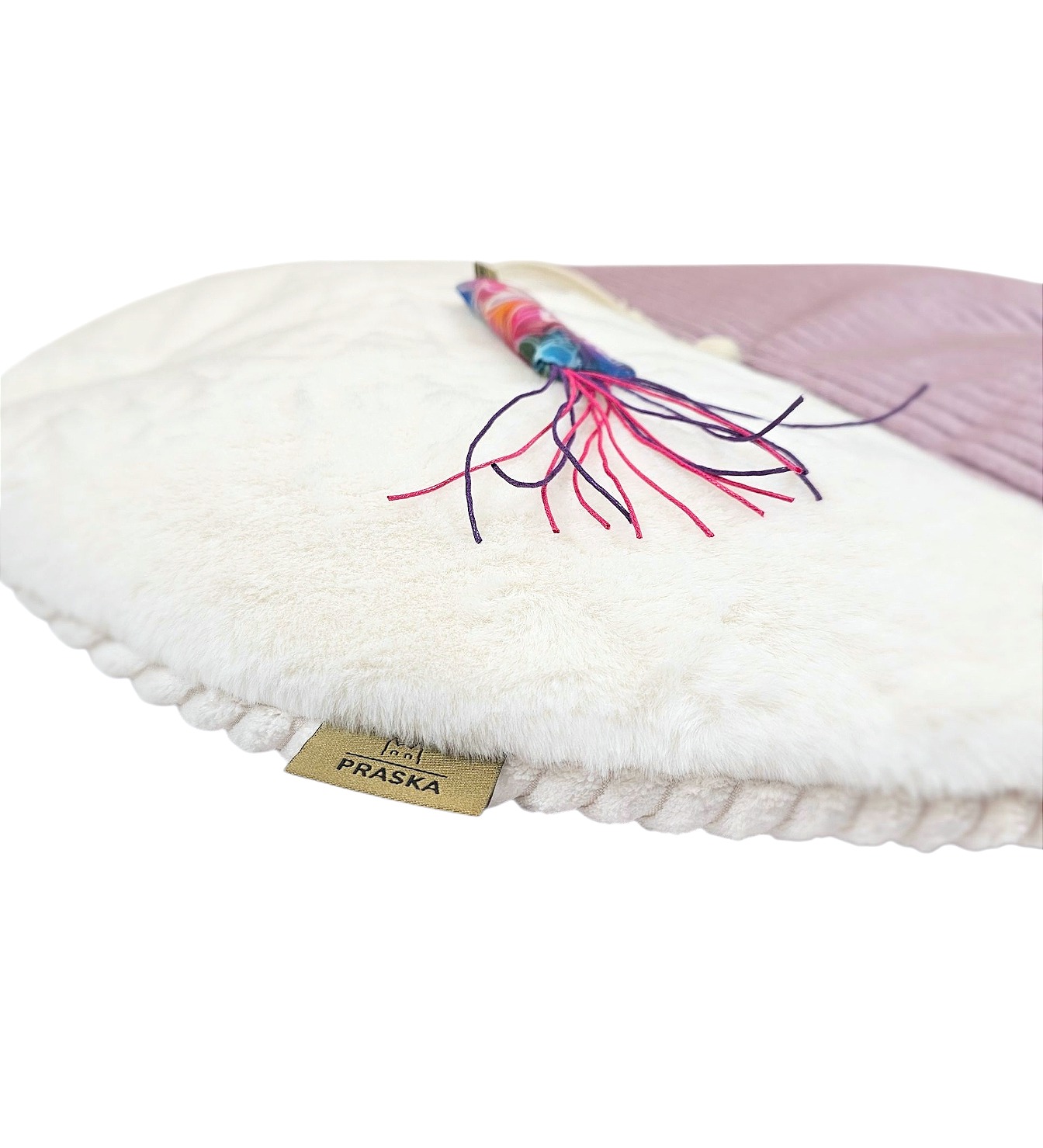 Mata TWIST to połączenie przyjemności i bodźców, jedna połowa wykonana jest z miękkiego futerka koloru mlecznego idealnego do odpoczynku, druga z tkaniny z warstwą szeleszczącej folii, która pobudza ciekawość i instynkty.