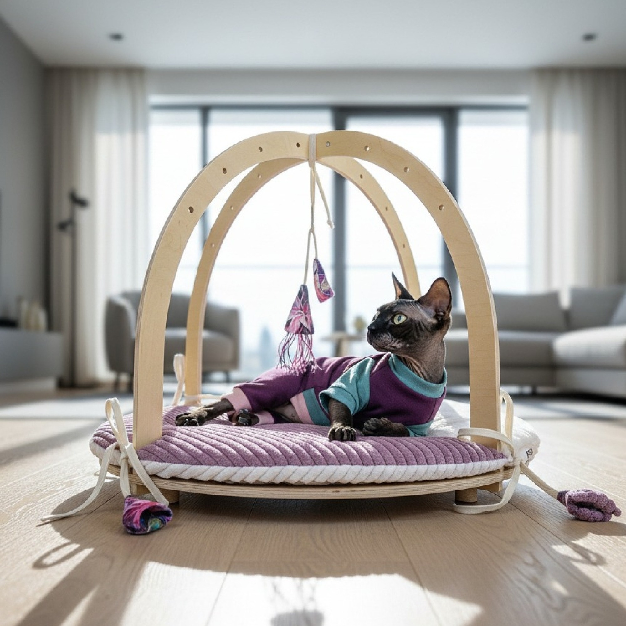 Subtelność i kontrast w jednej przestrzeni - miejsce, gdzie kot sam wybiera, co potrzebuje.