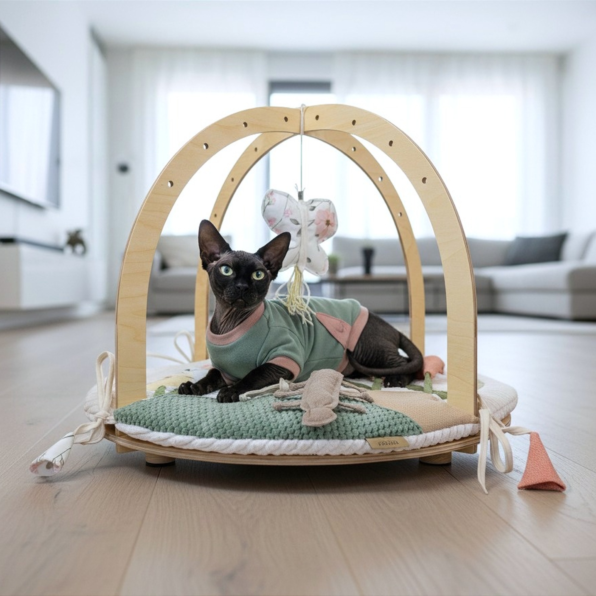 ARENA GARDEN została zaprojektowana z myślą o wszystkich kotach, zarówno młodych, jak i dorosłych, a także o całych miotach. Aplikacje inspirowane ogrodem: liście, kwiaty i trawy, stymulują zmysły kota, a lekka konstrukcja tworzy bezpieczną przestrzeń do zabawy, odpoczynku i obserwacji. To przemyślany produkt, który wspiera rozwój i odpowiada na naturalne potrzeby zwierzęcia.