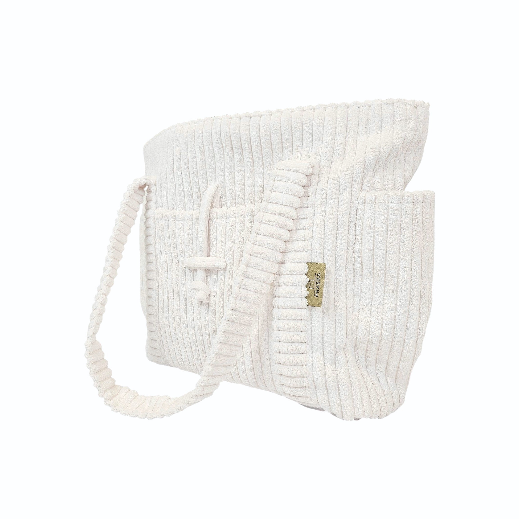 • wnętrze torby i kosmetyczki wykończone trwałą tkaniną w kolorze ecru
